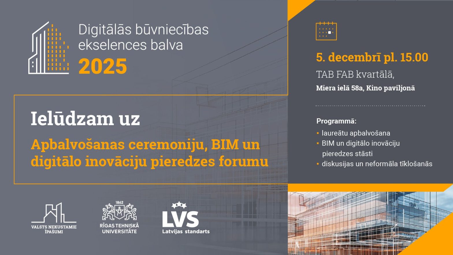 VSIA Valsts nekustamie īpašumi, 09.12.2025 Rīgā sumināti digitālās būvniecības līderi — pasniegtas Digitālās būvniecības ekselences balvas VAS “Valsts nekustamie īpašumi” (VNĪ) kopā ar Rīgas Tehnisko universitāti (RTU) un SIA “Latvijas Standarts” noslēguši pirmo konkursu “Digitālās būvniecības ekselences balva 2025”, godinot labākos Latvijas BIM un digitālo risinājumu projektus. Noslēguma pasākums TAB FAB kino paviljonā Miera ielā 58a… Turpiniet lasīt Platformai “PŪCE” 3. vieta nominācijā “Digitālā inovācija”
